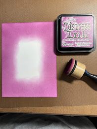 • Using the watercolor paper, ink all of the cardstock except for the center with Distress Ink in Seedless Preserves. Using Black Soot, ink the edges.