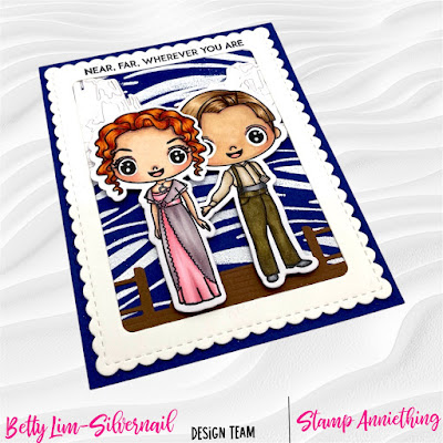 I used the new Rough Seas Stencil and white embossing powder to create the sea.